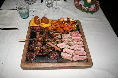 Un must … Le carni proposte provengono da allevamenti selezionati e salumerie artigianali del Chiantigiano, zona tipicamente vocata al buon vino e alla buona tavola. Tutte le portate sono servite su taglieri di pietra lavica e sono comprensive di contorni quali verdure grigliate, patate saporite e polentina grill con peperone piccante fritto.